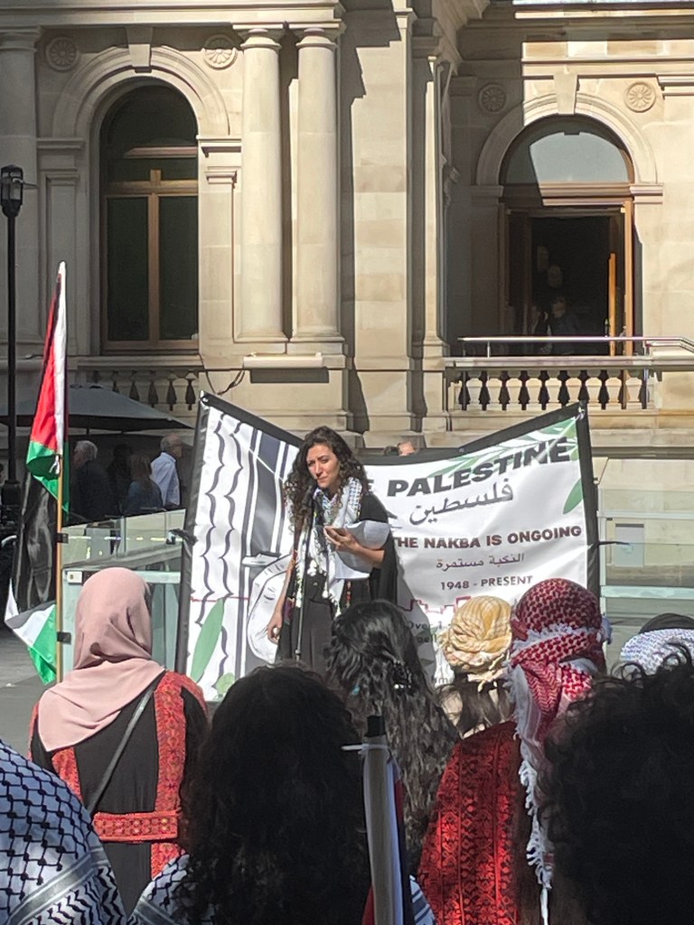 Remah speaking at the Rally for Palestine in Brisbane